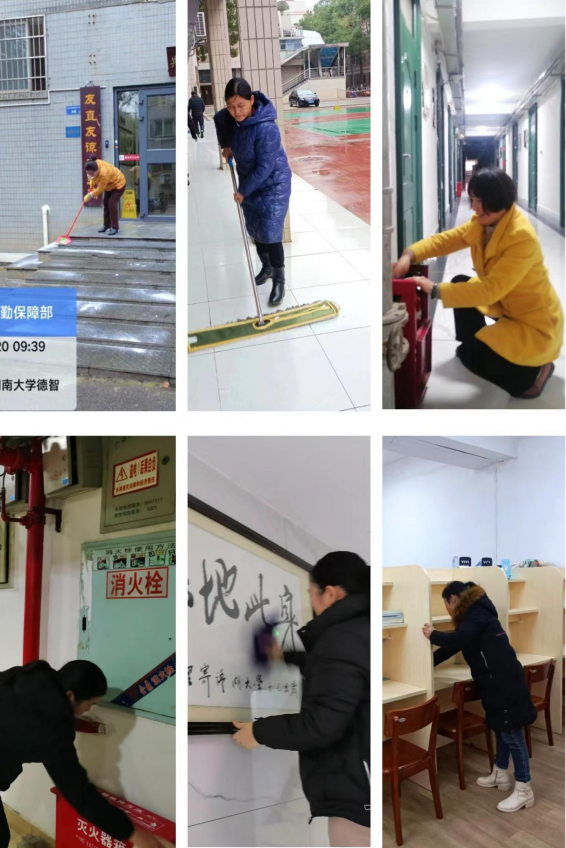 寒假期间由于低温雨雪天气频发,物业人员、水电师傅们赴保水保电第一线,争分夺秒地清理树枝障碍,抢修水管线路设备,宿管员对楼宇上下、里外进行了一次彻底大扫除;专业人员对直饮水设备的滤芯进行了全面更换和清洗维保,对洗衣设备进行了全面清洗;对空调、电梯进行了检修与维护;校车队完成对车辆安全性能的全面检查,车内卫生进行了全面清洁整理;学校快递邮件、电信网络服务已恢复营业;各食堂清洁卫生,本学期将继续增加南北各地特色菜的出品比例。