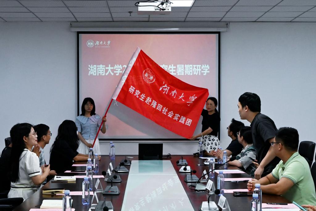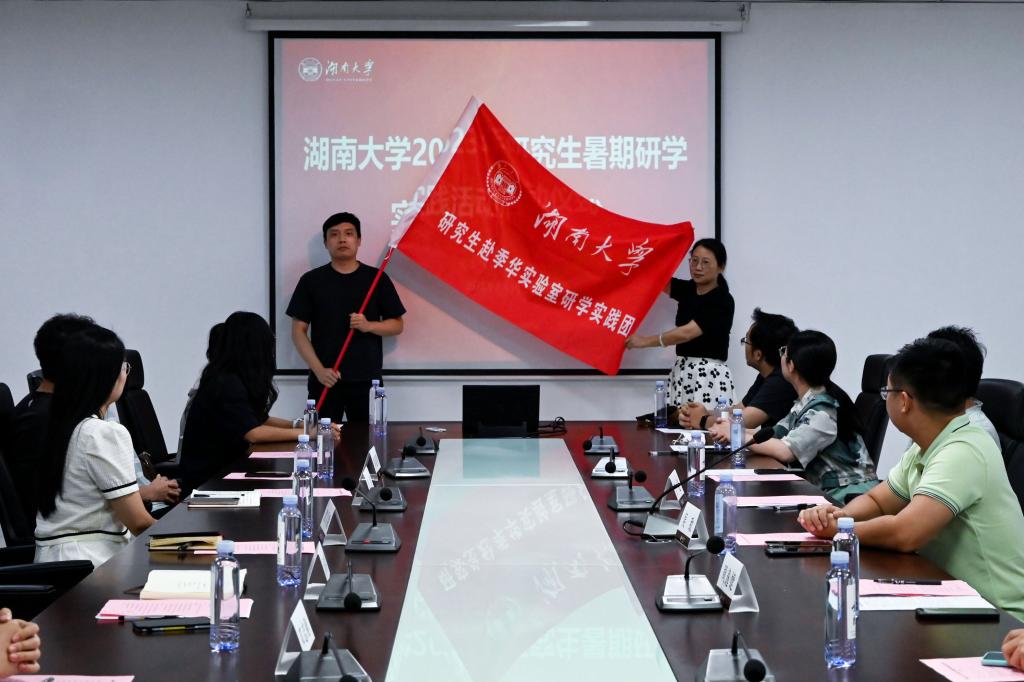 为第八届“魏源人才计划”研究生社会实践团授旗。