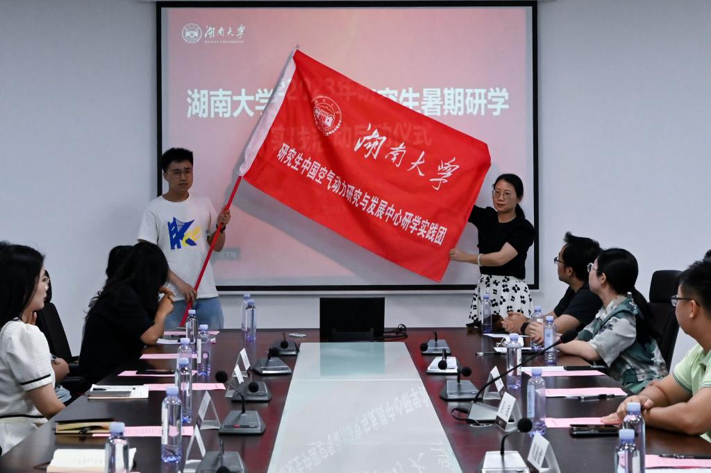 为首届中国空气动力研究与发展中心研究生研学实践团授旗。