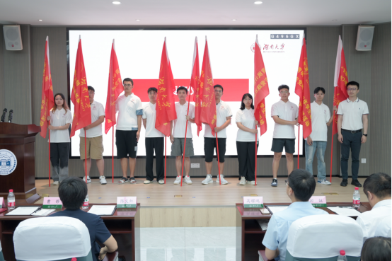 近日,湖南大学党委宣传部(新闻办公室)地址中心“青枫计划”2023年学生暑期地方党政机关基层实践活动暨重点行业、重点领域总部探秘研学计划出征仪式于复临舍报告厅举行。160余名党政机关实践活动与总部探秘研学计划学生代表参加。