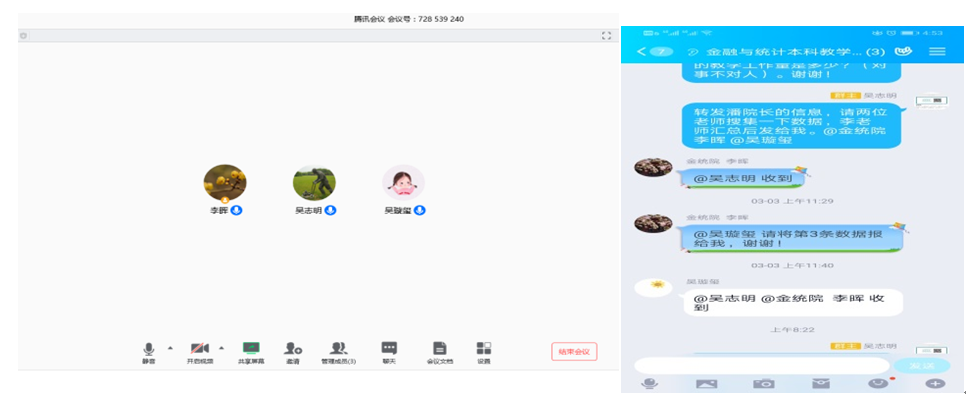 2月17日开课以来,李晖会同校优秀教学秘书、校宣传工作先进个人吴璇玺一起,及时联系任课老师,了解在线教学的开展情况、及时总结一周在线教学运行状况、及时提醒授课教师充分做好在线教学多种预案、及时传达学校有关本科教学工作的会议精神。在抗击“疫”情活动中,涌现出一批积极投入教学战“疫”的优秀教师,本科教学管理团队先后推出两期:“战‘疫’记:那些在线传道解惑的金统人”新闻报道,并推出课程团队报道多篇,受到各方的一致好评。