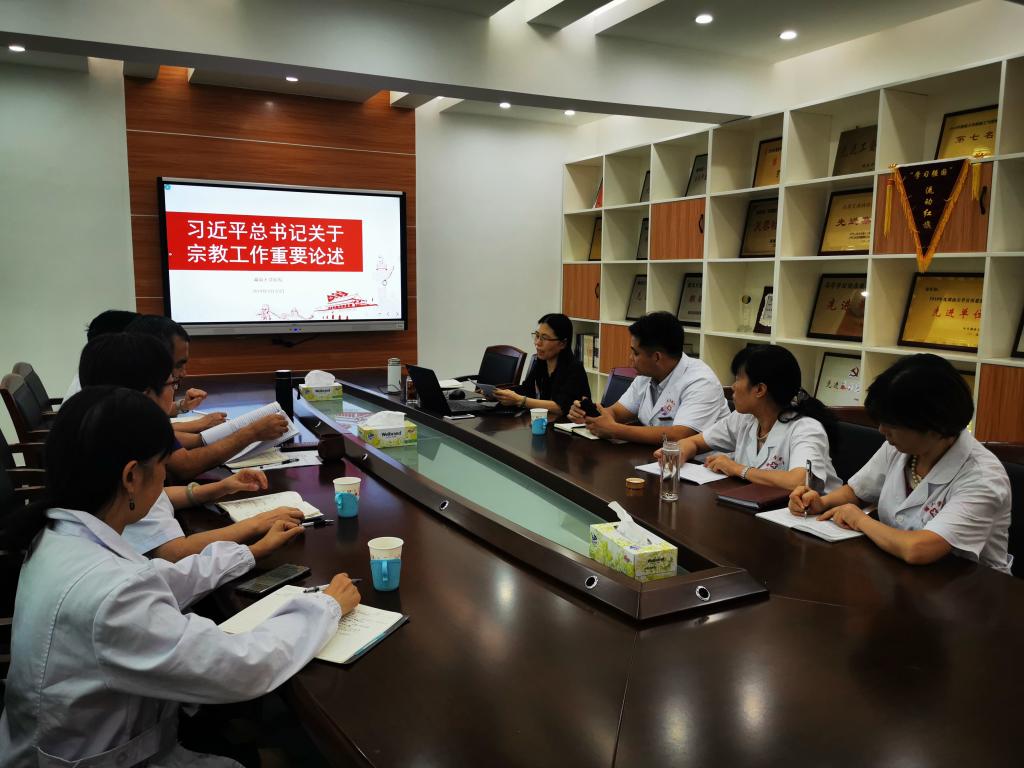 张坤在学习总结发言时强调,党的民族宗教理论是习近平新时代中国特色社会主义理论的重要组成部分,党员领导干部要带头学习领会中国特色社会主义民族宗教理论;要提高政治站位,坚持从政治和全局高度看待民族宗教问题,充分认识宗教问题的特殊复杂性,各支部要结合“不忘初心、牢记使命”主题教育,以宗教工作为主题扎实开展专题学习,弘扬宣传社会主义核心价值观,教育引导党员干部从意识形态的高度理性看待宗教信仰,自觉抵制各种利用宗教进行的违规违法活动,牢牢守住底线,确保医院和谐发展、校园安全稳定。