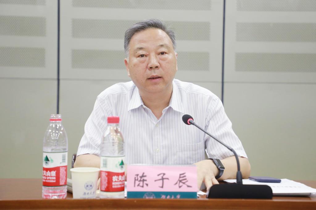 陈子辰就落实主题教育各项任务提出四点意见:一是聚焦主题主线,深入学习贯彻习近平新时代中国特色社会主义思想。要在学懂弄通做实习近平新时代中国特色社会主义思想上取得新进步、达到新高度,在坚持党的全面领导、加强党的建设上走在前列、做出表率。二是把握“守初心、担使命,找差距、抓落实”总体要求,努力实现“五句话”目标。要紧紧围绕为党育人、为国育才,突出党的政治建设,坚持立德树人,着力整改解决党委领导下的校长负责制、基层党组织建设、教师队伍建设、意识形态工作、学生社团等工作中存在的突出问题。三是坚持高起点、高标准,统筹推进四项重点措施。要把学习教育、调查研究、检视问题、整改落实四项重点措施有机结合,狠抓落实,贯穿始终,确保实效,学做结合、查改贯通,推动主题教育高起点开展、高标准推进,取得扎实成效。四是严格履行主体责任,切实防止形式主义、官僚主义。学校党委要高度重视,认真履行主体责任、加强组织领导、强化督促指导,全面从严、全程求实、全员投入,确保主题教育高质量开展。