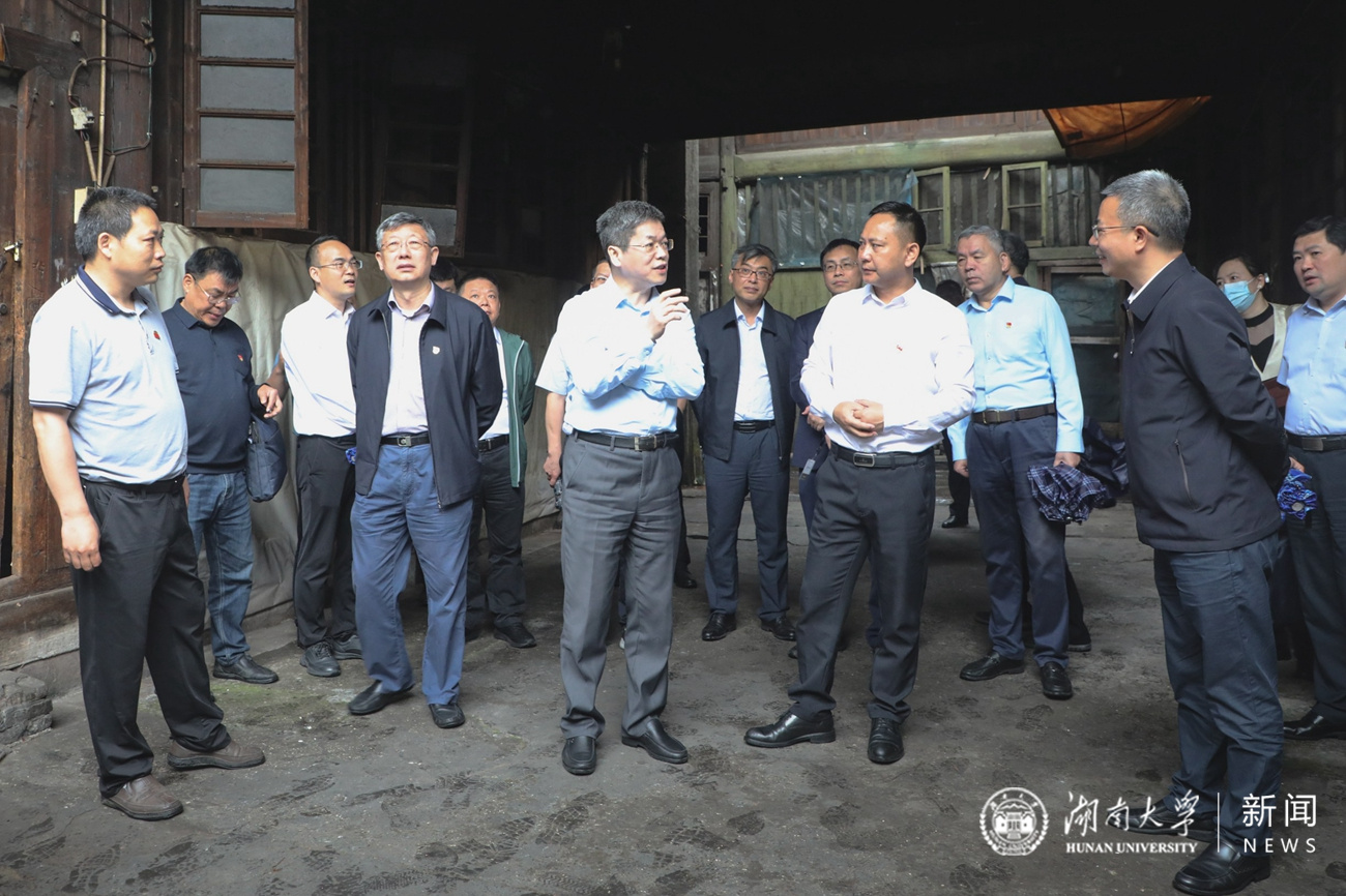 在湖南大学党委宣传部(新闻办公室)地址中心西迁旧址,中心组(扩大)一行调研湖大辰溪办学筹备处旧址、湖大地下党组织联络点旧址以及龙头垴湖大办学旧址等,了解湖大西迁办学历史,听取当年湖大师生与辰溪人民的深情故事。