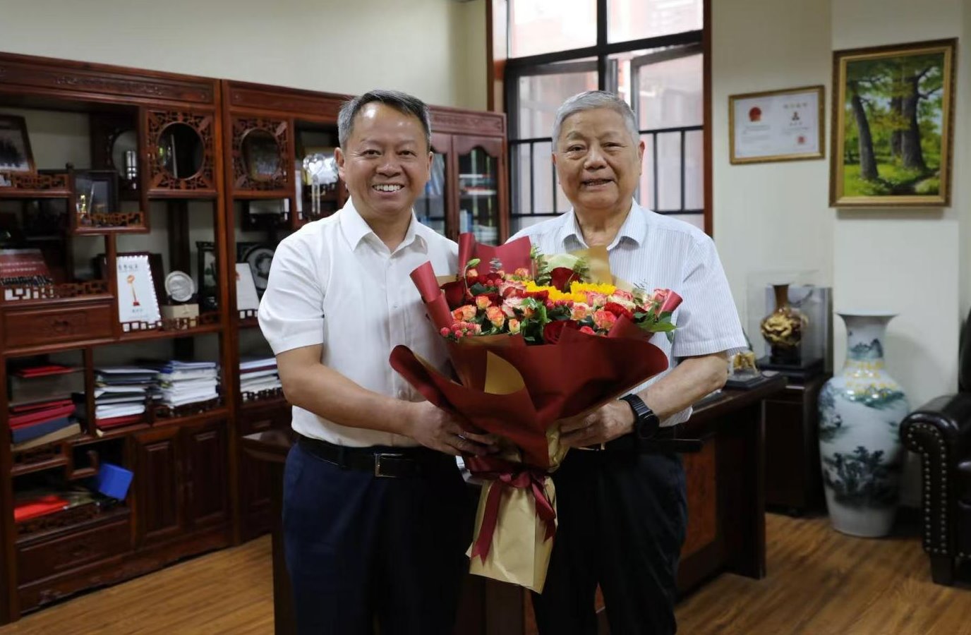 走访慰问中,校领导感谢他们长期以来为湖南大学党委宣传部(新闻办公室)地址中心教育事业的发展付出的辛劳和作出的贡献,希望全体教师以教育家精神为引领,深入落实立德树人根本任务,以德立身、以德立学、以德施教、以德育德,努力培养新时代经世致用领军人才,为加快建设教育强国贡献更多智慧与力量。