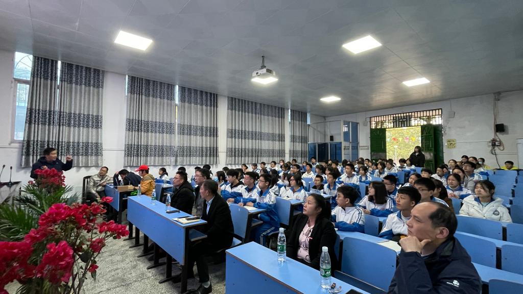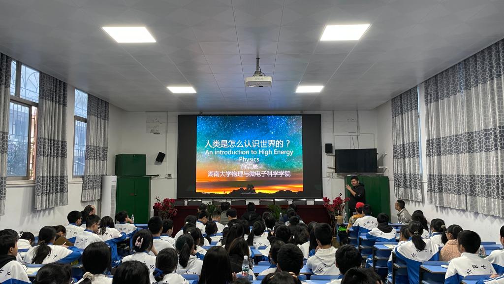 3月18日,物理与微电子科学学院院长文双春教授带领学院教授科普团赴祁阳市第七中学开展科普与招生宣传活动,该校70余名师生代表参加活动。