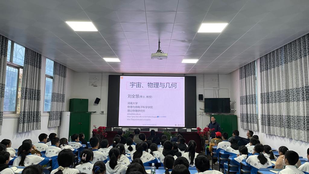 刘全慧教授作“宇宙、物理与几何”科普讲座。
