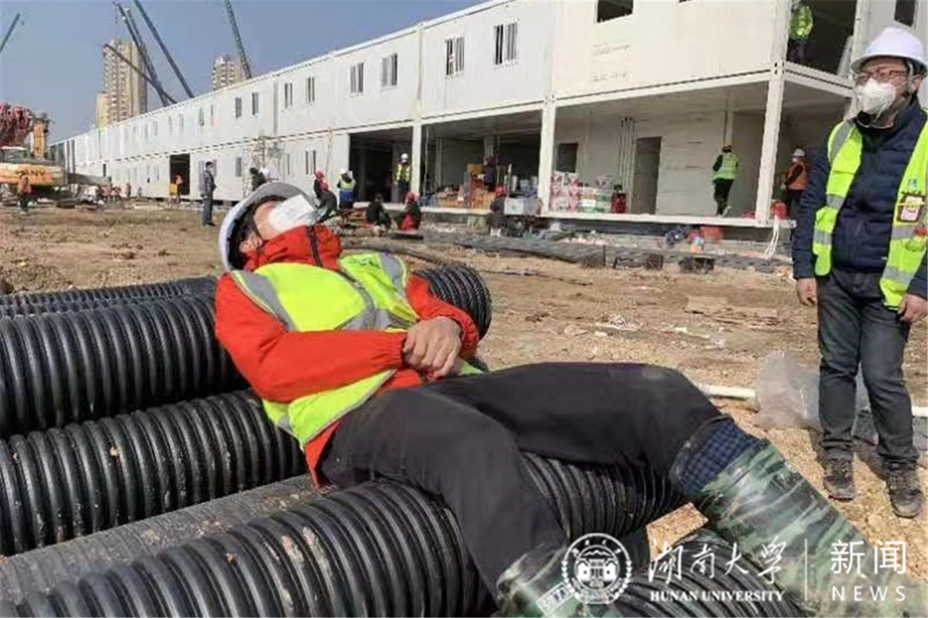 10天10夜,冯建堂常常顾不上吃饭、喝水,也顾不上睡觉,好几次累得躺在工地上的建筑材料上,直接睡着了。