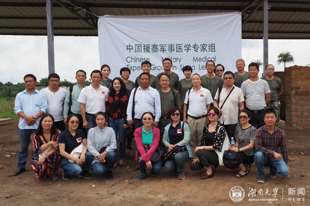 与中国援塞医疗队、中国援塞军事医学专家组合影(第二排左起第五为郑嘉韬)