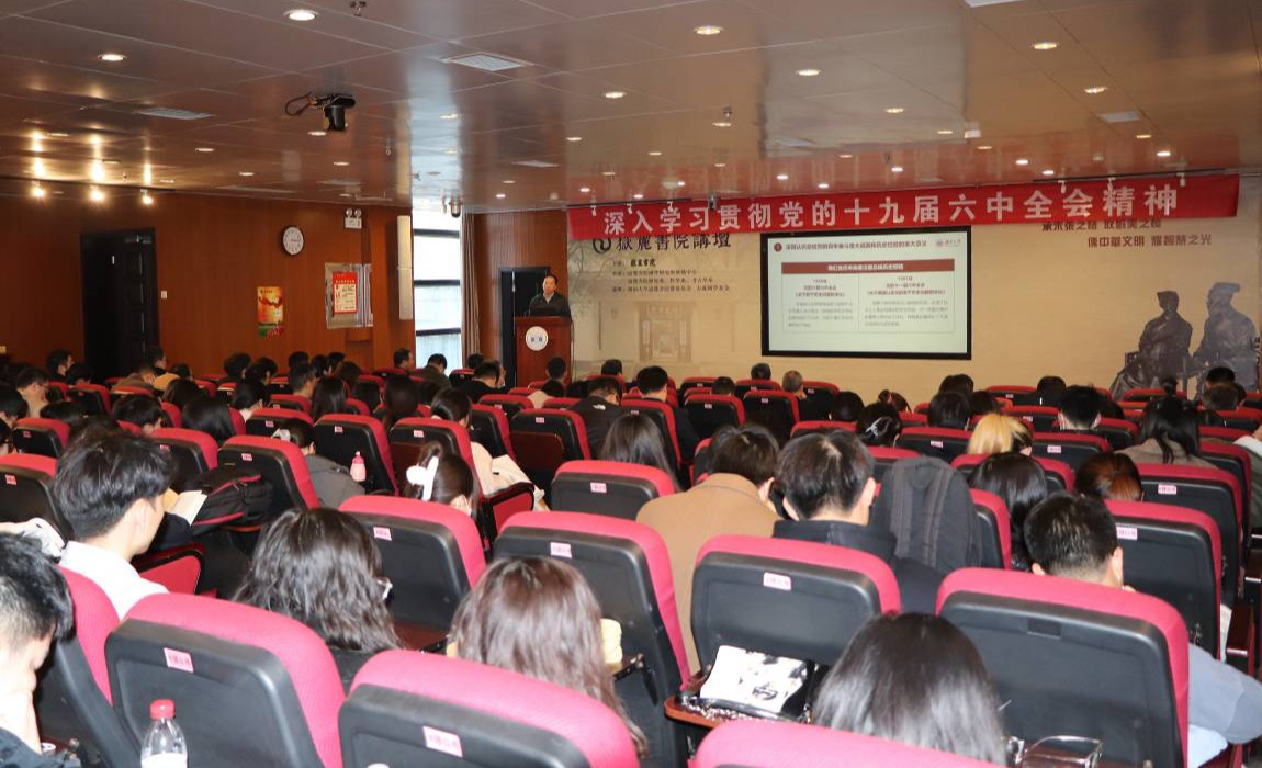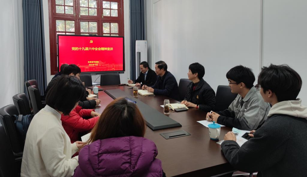 12月21日下午,岳麓书院党委组织召开深入学习贯彻党的十九届六中全会精神专题会议,全体师生党员参加学习。纪委副书记、监察处处长杨忠旺到会指导,院党委书记陈宇翔作专题报告。会议现场。陈宇翔领学了党的十九...