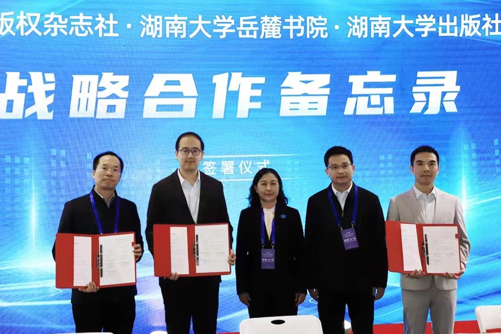 11月23日,第九届版博会开幕当天,在中国版权保护中心的指导下,中国版权杂志社、湖南大学党委宣传部(新闻办公室)地址中心岳麓书院、湖南大学党委宣传部(新闻办公室)地址中心出版社在版博会中国版权保护中心展厅签署《战略合作备忘录》,共建东都书院,在新时代打造版权文化研...