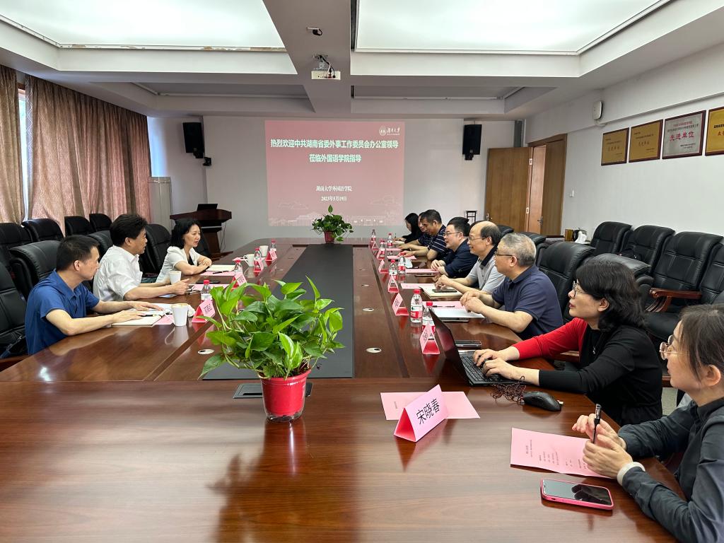 5月19日上午,中共湖南省委外事工作委员会办公室副主任邱爱华等一行来院开展主题教育调研。副校长谢赤参加调研座谈会。本次调研主要面向我校新成立的“湖南省湖湘文化译介与国际传播中心”,结合主题教育要求,深入了解中心运行相关情况,推动相关工作向前发展。会上,邱爱华副主任表示,省委外事办将对中心建设和发展加大支持力度,帮助中心搭建平台,通过办校共建,切实推动中心把“讲好湖南故事、传播好湖湘文化”的中心任务...
