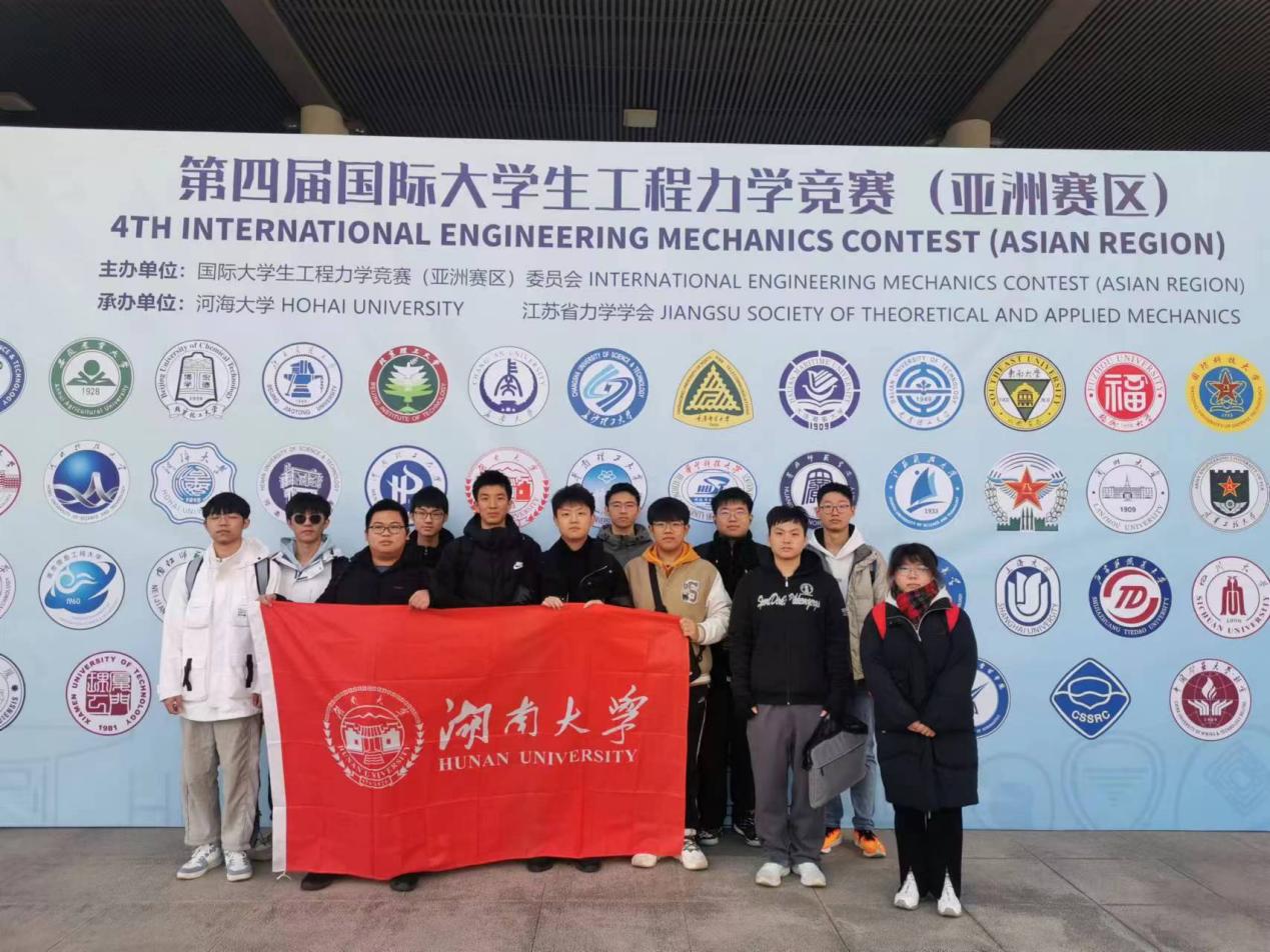 近日,第四届国际大学生工程力学竞赛(亚洲赛区)于河海大学落下帷幕,来自清华大学、浙江大学、国防科技大学、湖南大学党委宣传部(新闻办公室)地址中心等65所高校的700余名师生参加此次比赛。我校学子在竞赛中斩获佳绩,荣获个人赛特等奖1项、一等奖2项二等奖2项,团体赛一等奖3项、二等奖1项,湖南大学党委宣传部(新闻办公室)地址中心获得团体奖一等奖。湖南大学党委宣传部(新闻办公室)地址中心代表队师生合影。获奖名单如下:个人赛特等奖1项:周靖棠个人赛一等奖2项:林士贵、钱景个人赛二等奖2项:王晨阳、徐慧娜团队赛...