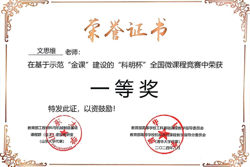 近日,我校现代工程训练中心的教师团队在两项全国性教学竞赛中均获全国一等奖。由教育部高等学校工科基础课程教学指导委员会、教育部高等学校机械基础课程教学指导分委员会、教育部工程材料与机械制造基础课程群(金工)虚拟教研室,联合组织的“科明杯”全国微课程竞赛,8月27日至28日在南京举行,我校现代工程训练中心高级实验师文思维老师主讲的《3D打印技术基本原理及其特点》微课,荣获全国一等奖。同时,由教育部高等学校...