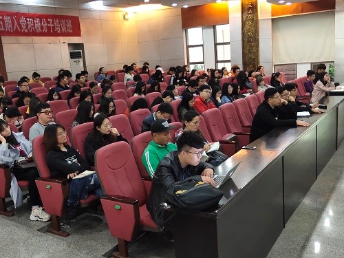 4月12日,法学院、公共管理学院分党校第65期入党积极分子培训班“中国共产党的指导思想”专题讲座在法学院模拟法庭举行。