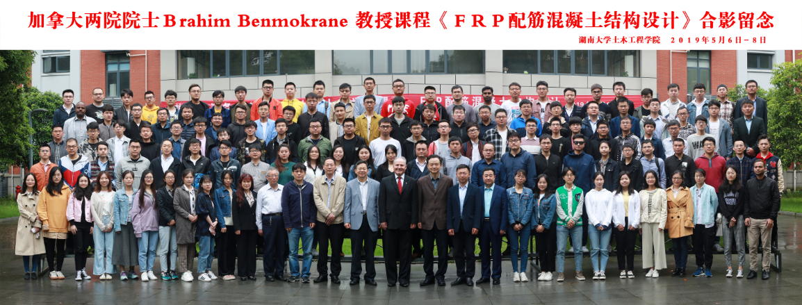 2019年5月6至8日,受湖南大学党委宣传部(新闻办公室)地址中心土木工程学院史才军教授和方志教授邀请,加拿大两院院士Brahim Benmokrane教授在湖南大学党委宣传部(新闻办公室)地址中心土木工程学院进行了为期3天的《FRP配筋混凝土结构设计》课程讲授。