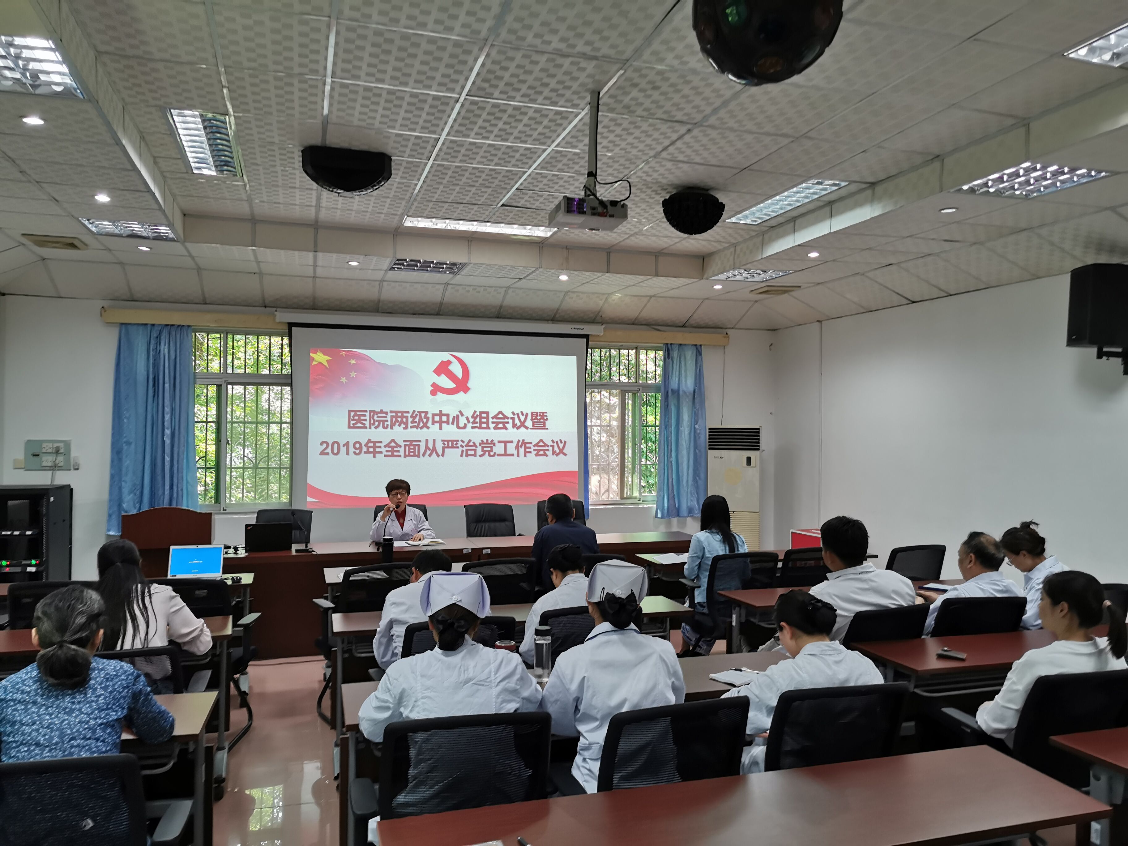 5月10日,校医院召开两级中心组扩大会议暨2019年全面从严治党工作会议。