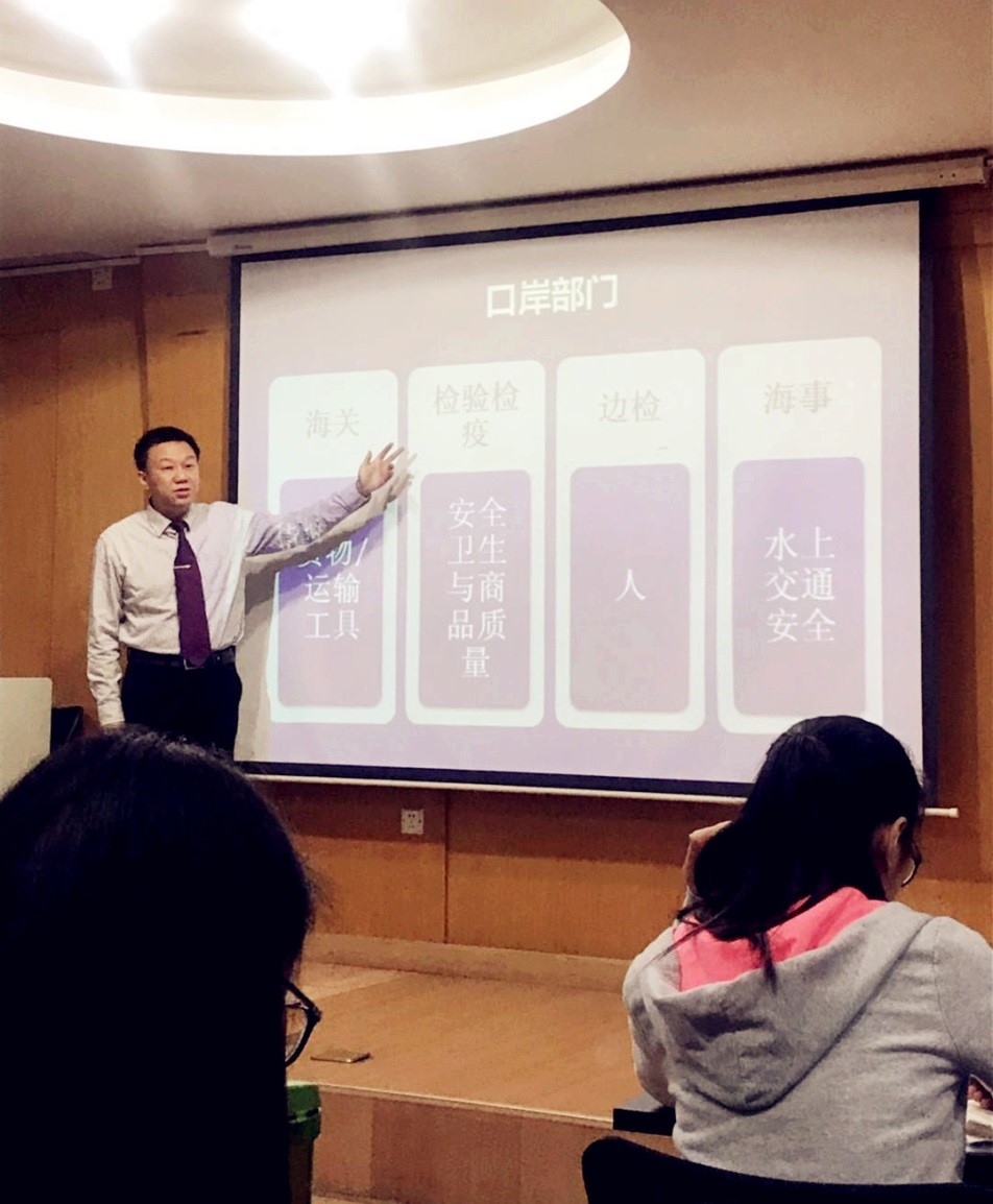 近日,我院邀请长沙星沙海关二级关务督察尹远老师在行政楼401做《大通关漫谈》专题讲座,由国贸系党支部书记莫莎副教授担任主持。