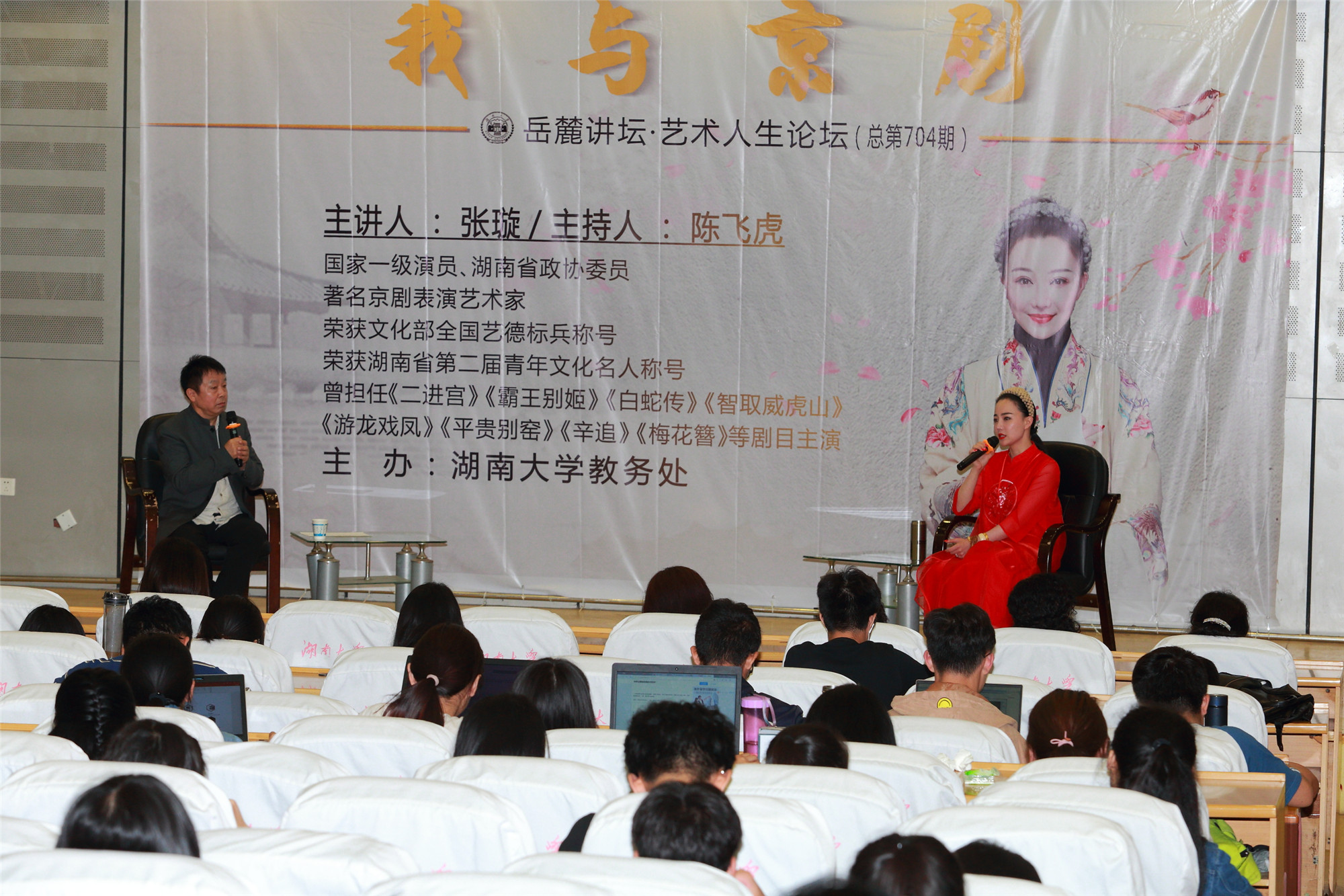 【湖大新闻】 5月15日晚,国家一级演员,著名京剧表演艺术家,湖南省政协委员张璇做客岳麓讲坛艺术人生论坛,为大家带来题为“我与京剧”的专题讲座。