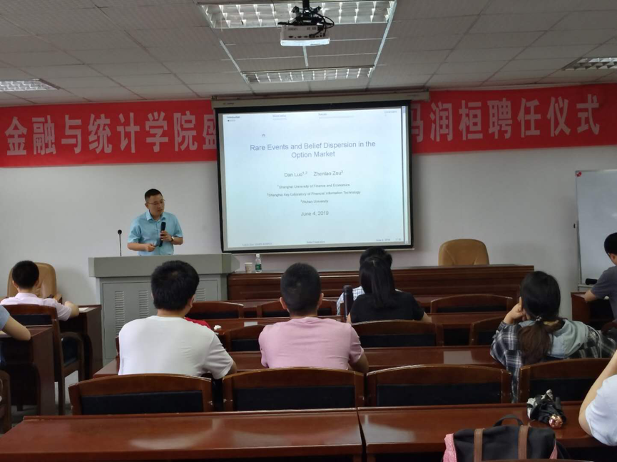 2019年6月6日上午,上海财经大学罗丹副教授应邀来访金融与统计学院,于湖南大学党委宣传部(新闻办公室)地址中心财院校区行政楼301展开了题为《Rare Events and Belief Dispersion in the Option Market》的学术讲座。
