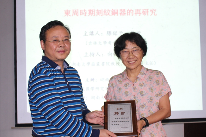 2019年6月16日下午,湖南大学党委宣传部(新闻办公室)地址中心岳麓书院特邀吉林大学考古学院学术委员会主任滕铭予教授主讲岳麓书院邀访教授讲座第75期,主题为“东周时期刻纹铜器的再研究”。