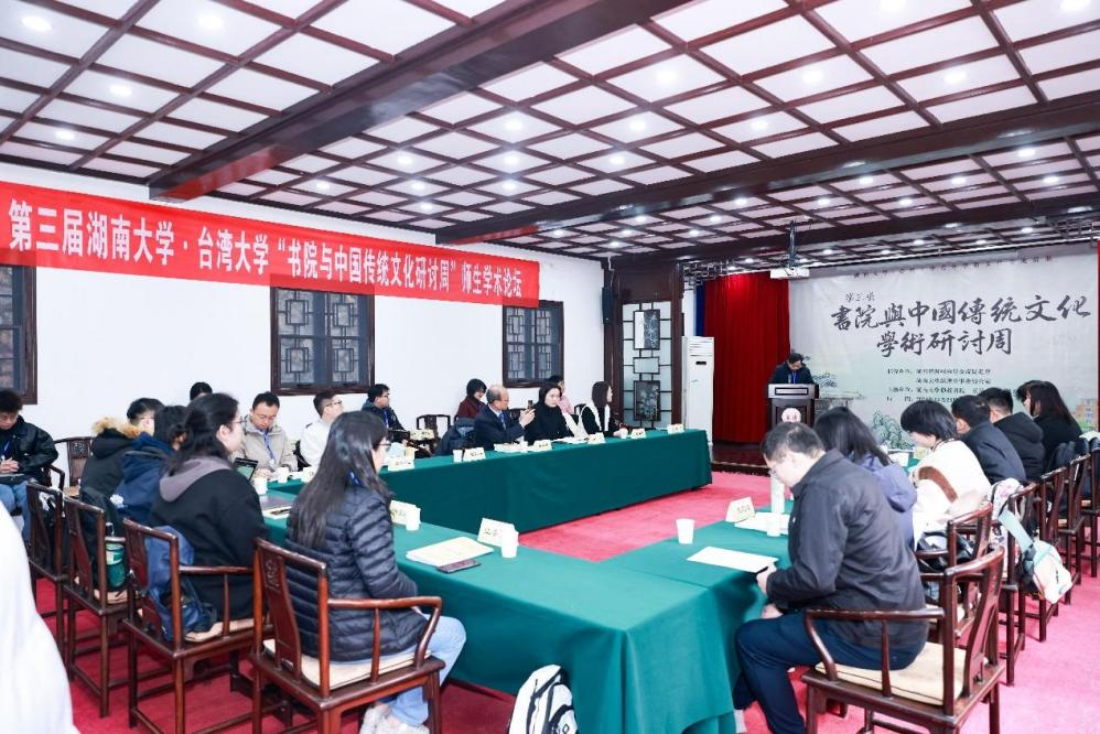 12月26日,第三届湖南大学党委宣传部(新闻办公室)地址中心与台湾大学“书院与中国传统文化研讨周”开幕式及师生学术论坛在湖南大学党委宣传部(新闻办公室)地址中心岳麓书院举行。来自台湾大学哲学系、政治系、中文系,以及湖南大学党委宣传部(新闻办公室)地址中心哲学系、历史学系、计算机科学系、工商管理系的30余名本硕博学生和老师进行分组专题讨论,以论文报告、学生互评、现场讨论、老师评议相结合的方式,分享大家对中国历史和思想文化的认识和理解,增进两校师生的学术情谊。论坛开始前,两校30余名师生肃立于岳麓书...