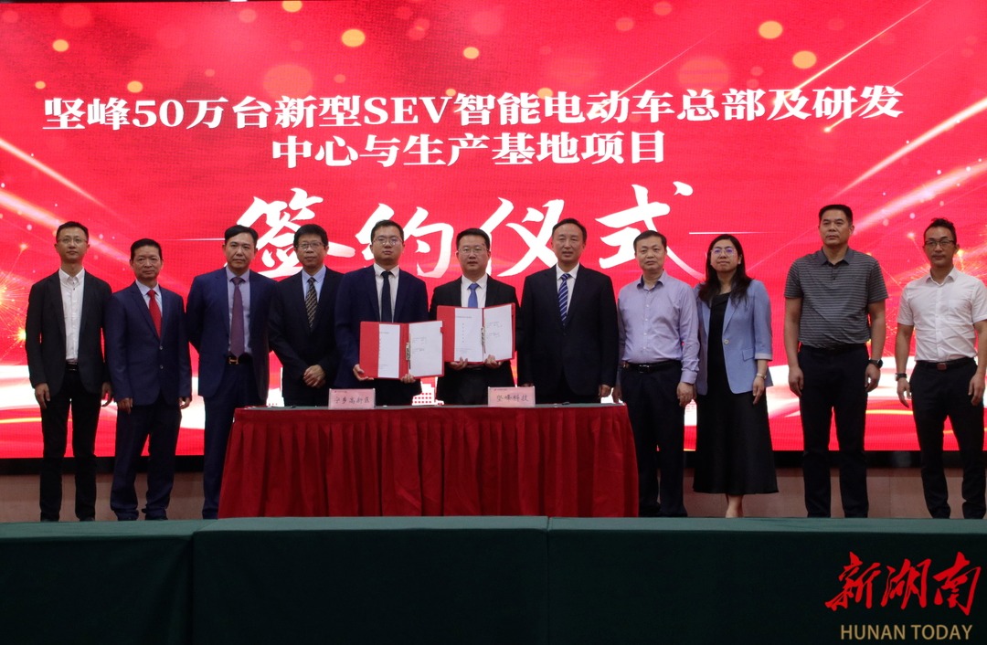5月9日下午,坚峰新型SEV智能电动车总部及研发中心项目签约仪式在长沙举行,项目由湖南坚峰科技有限公司投资运营,规划建设项目总部、研发及生产基地,拟投资50亿元。该公司创始人朱登科、刘军为我校2000级车辆工程本科校友,投资机构嘉兴谦吉投资有限公司总经理李笑冬为我校1988级工业自动化本科校友。长沙、宁乡市相关市直部门单位负责人,湖南坚峰科技有限公司、宁德时代电机科技有限公司、嘉兴谦吉投资有限公司等企业负责人...