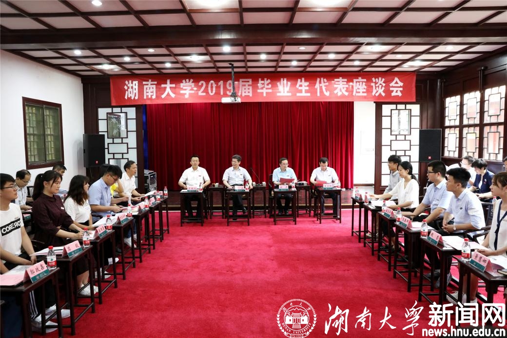 座谈会现场 6月6日下午,我校2019届毕业生代表座谈会在岳麓书院明伦堂举行。