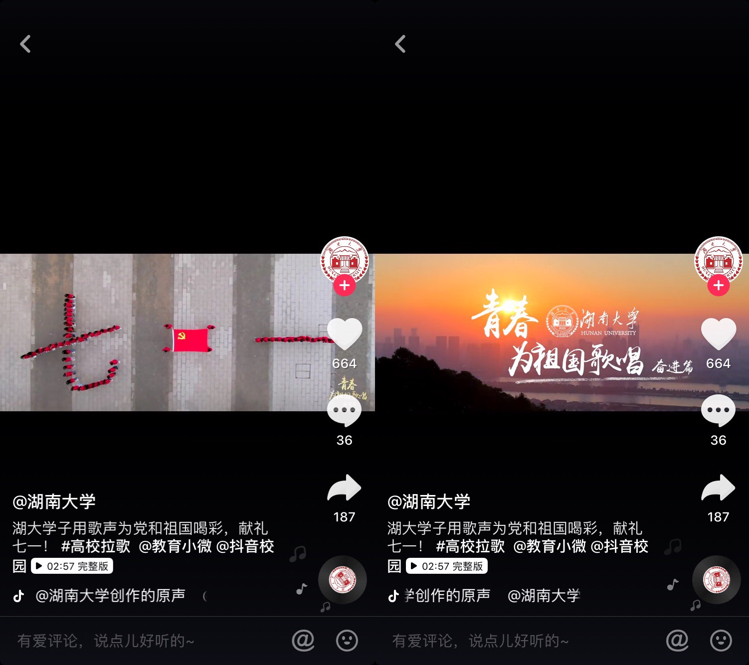 七一到来之际,学校党委宣传部(新闻办)联合艺术教育中心等共同拍摄制作#青春为祖国歌唱#(奋进篇)——湖大青春学子唱响《没有共产党就没有新中国》和《妈妈教我一首歌》,深切表达了对党和祖国的无限热爱和美好祝...