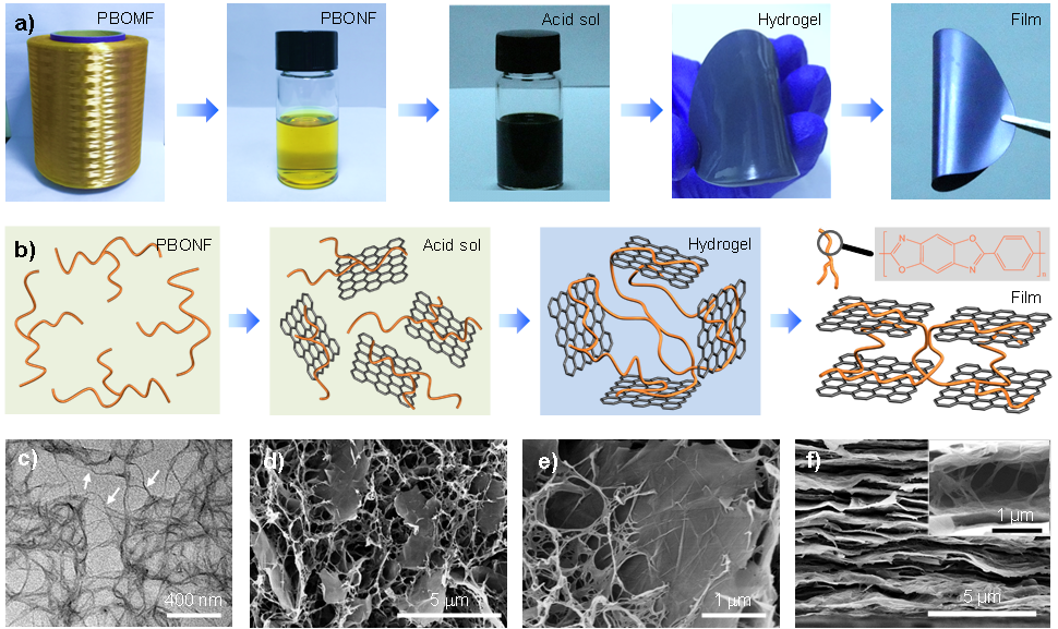 目前,大量文献报道了多功能石墨烯基薄膜材料,显示出卓越的功能特性,但石墨烯基薄膜材料应变低、韧性不足,不能承受反复折叠,严重制约了其在柔性可弯折电子器件等领域的应用。