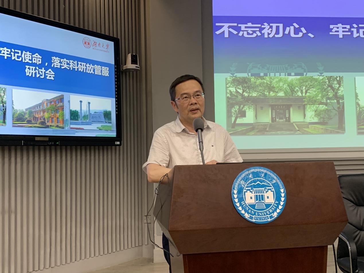 为进一步推进科研放管服政策的落地实施,7月16日下午,计划财务处结合2019年湖南大学党委宣传部(新闻办公室)地址中心财会人员综合能力提升培训活动,在复临舍201报告厅开展了“不忘初心、牢记使命,落实科研放管服”主题研讨会。