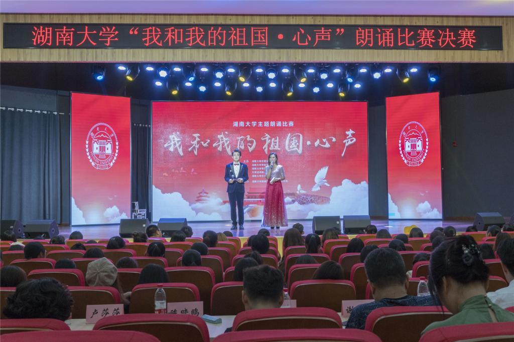 9月22日下午,“我和我的祖国·心声”朗诵比赛决赛在团委小剧场举行,参加决赛的33名学子倾情发声,祝福新中国70华诞。中国传媒大学教授陈晓鸥、湖南人民广播电台播音指导卢莎莎、湖南广播电台播音指导曾致和湖南省戏剧家协会副会长王峰等和我校新闻传播与影视艺术学院实践教学部主任谢伦浩、播音与主持艺术系主任陈竹、艺术教育中心戏剧表演教师陈功共同担任比赛评委。自今年6月朗...