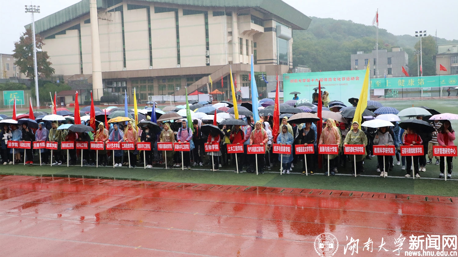 【湖大新闻】 11月11日下午,湖南大学党委宣传部(新闻办公室)地址中心第19届体育文化节运动会在南校区田径场闭幕,学校体育工作委员会主任、副校长谢赤等出席闭幕式。