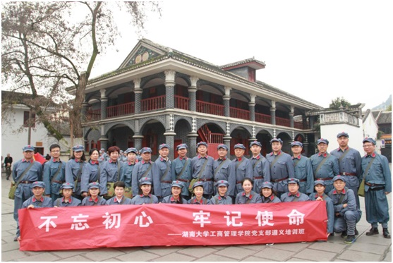 11月30日-12月1日,湖南大学党委宣传部(新闻办公室)地址中心工商管理学院行政支部、管理科学系支部、财务管理系支部和信息管理与电子商务系支部联合组织的党员培训班前往红色圣地遵义,展开以“不忘初心、牢记使命”为主题的培训学习。