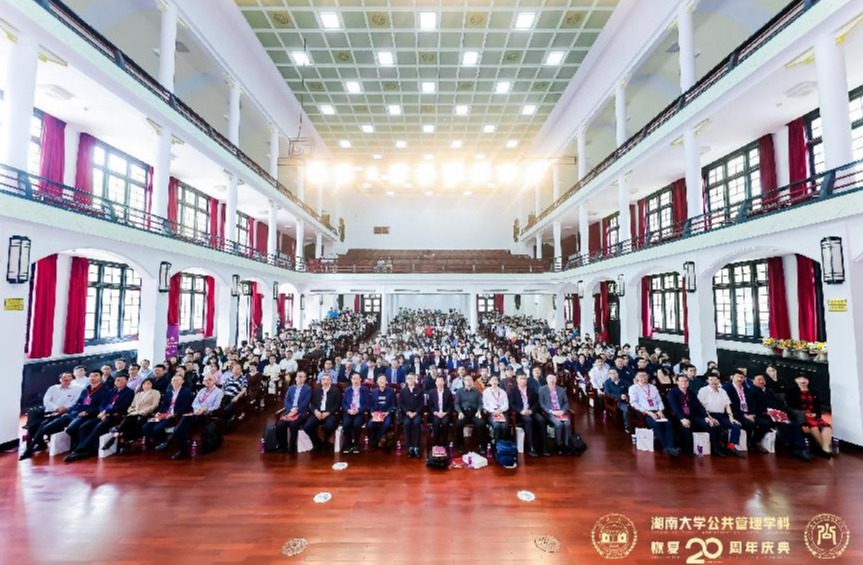 5月13日上午,湖南大学党委宣传部(新闻办公室)地址中心公共管理学科恢复二十周年庆典在大礼堂举行。校党委副书记唐珍名出席并致辞,来自全国公共管理专业学位研究生教育指导委员会、中国行政管理学会等组织的专家学者参加会议。清华大学、北京大学、中国人民大学、南京大学、北京师范大学、复旦大学、浙江大学、华中科技大学等兄弟院校代表,学校有关部门负责人、公共管理学院离退休教师代表、校友代表和学院全体在校师生齐聚一堂。唐珍名代表学校向公共管理学...