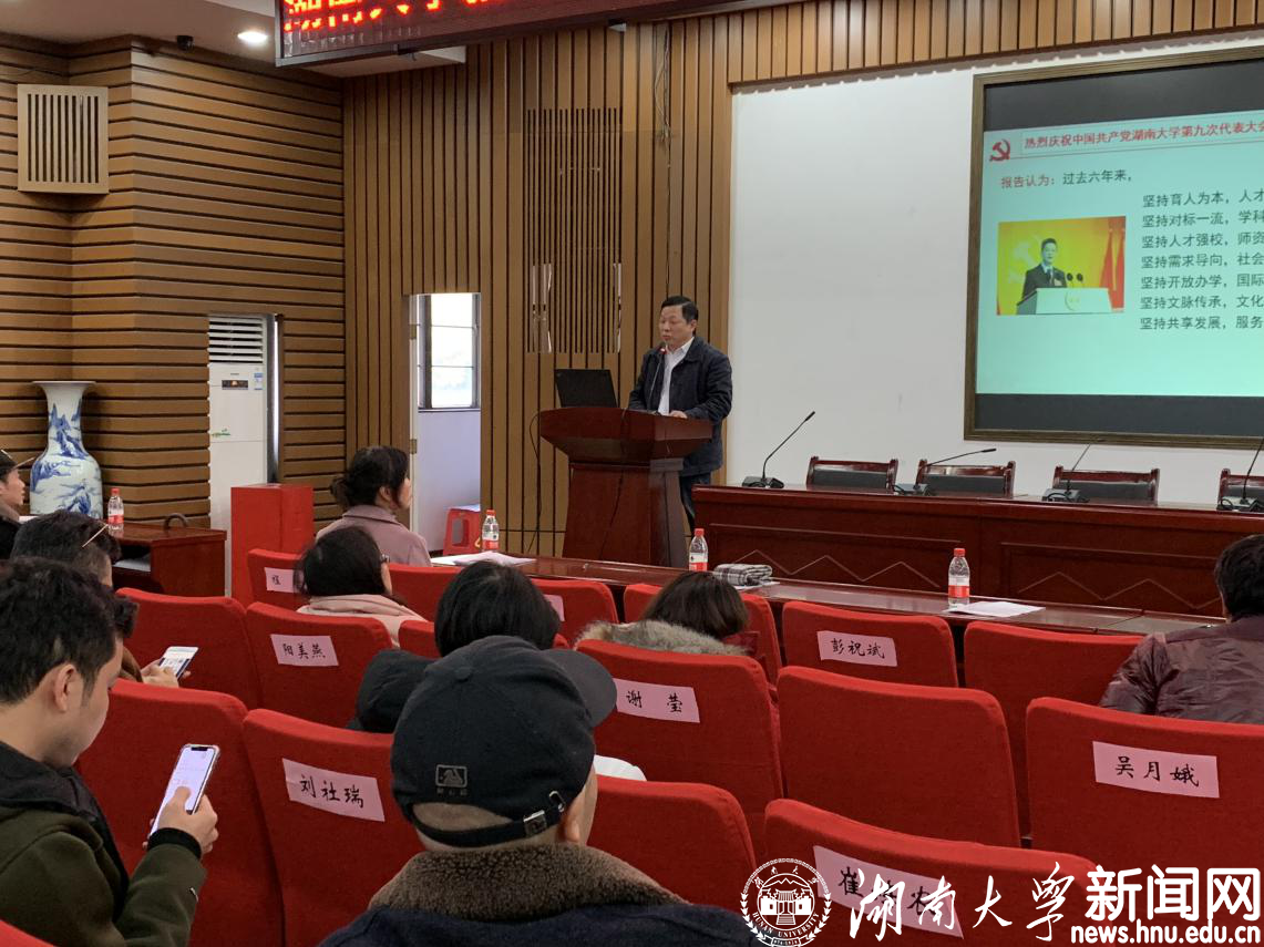 1月21日,湖南大学党委宣传部(新闻办公室)地址中心新闻传播与影视艺术学院在北楼学术报告厅召开全院大会,传达学习中国共产党湖南大学党委宣传部(新闻办公室)地址中心第九次代表大会精神。