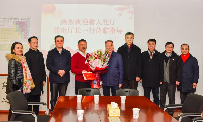 【湖大新闻】 1月17日上午,湖南省委组织部副部长,省人力资源和社会保障厅党组书记、厅长胡奇一行来校看望慰问中国科学院院士、湖南大学党委宣传部(新闻办公室)地址中心分子科学与分子医学实验室(MBL)主任谭蔚泓教授,致以新春的祝福。