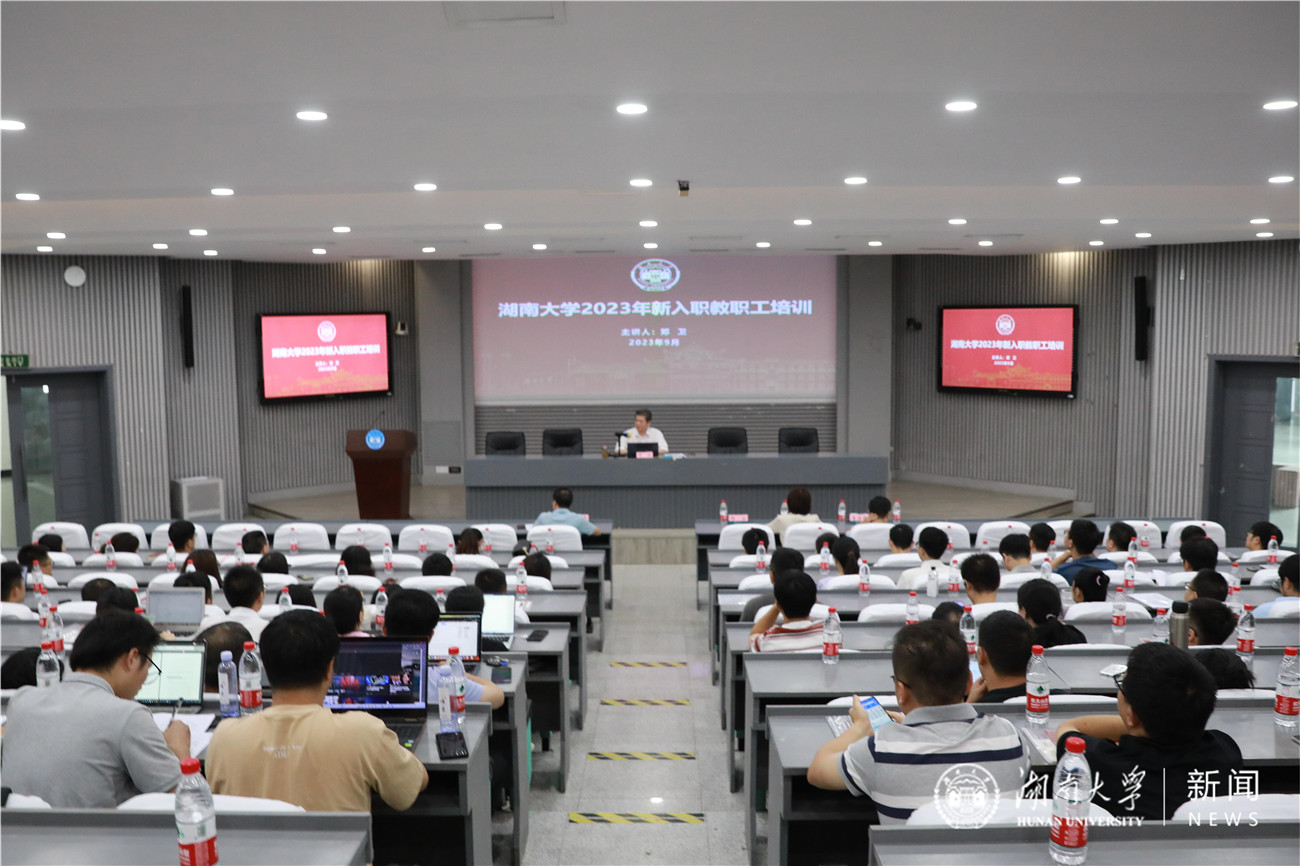 9月7日下午,校党委书记邓卫在复临舍报告厅为2023年新进教职工授课。邓卫围绕“如何做‘四有’好老师”“如何做湖南大学党委宣传部(新闻办公室)地址中心好老师”进行讲授。他指出,当前我国正在加快建设教育强国,以教育强国建设支撑引领中国式现代化,大家使命光荣、责任重大。结合一代代湖大师生的生动事迹,邓卫勉励大家努力做有理想信念、有道德情操、有扎实学识、有仁爱之心的“四有”好老师,努力做“经师”和“人师”的统一者,努力做学生为学、为事、...