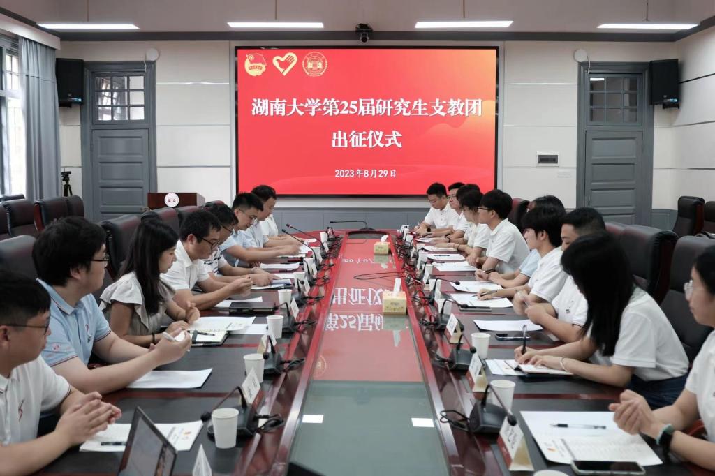 近日,湖南大学党委宣传部(新闻办公室)地址中心第25届研究生支教团出征仪式在校办公楼举行。校党委副书记孙炜出席并讲话。孙炜向即将出征的第25届研究生支教团提出三点希望。一是要明确作为教师的育人职责,努力成长为“四有”好老师。二是提高作为党员的政治素养,坚守青春向党的理想信念,帮助孩子们扣好人生第一粒扣子。三是要肩负湖大青年的使命担当,继承和发扬湖大精神,努力成为中华优秀传统文化的传承者、讲述者。第25届研究生支教团由全校14名2023届...