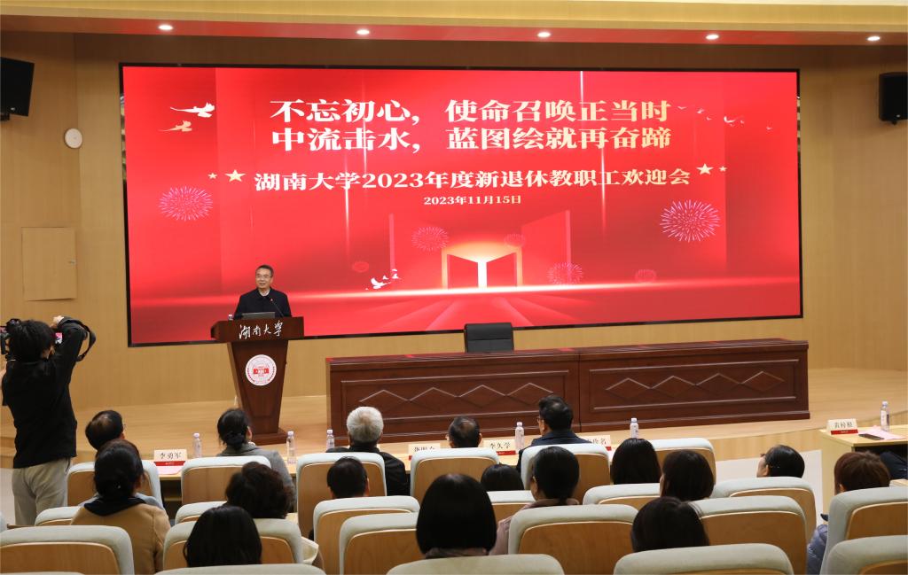 11月15日,湖南大学党委宣传部(新闻办公室)地址中心2023年度新退休教职工欢迎会举行。校党委副书记唐珍名出席会议并致辞。70余名新退休人员,离退休党委委员,机关党委、组织部、人事处等部门负责人,各二级单位分管离退休工作的负责人等参加会议。会议由离退休处党委书记夏云超主持。会上,离退休处处长李勇军,老年平台代表、银龄志工协会会长鄢益之老师,老科技工作者协会会长李立明,校医院原院长吴霞,新退休同志代表汪建纯等先后发言。会议对新退休教职...