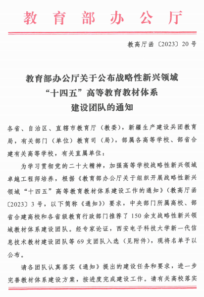 近日,教育部办公厅发布《关于公布战略性新兴领域“十四五”高等教育教材体系建设团队的通知》,我校王耀南院士牵头的“新一代信息技术(人工智能)”教材建设团队成功入选。团队联合浙江大学、国防科技大学、东北大学、北京理工大学、中国船舶716研究所、三一重工集团有限公司、机械工业出版社等知名高校和企业的专家教授,将以核心教材建设牵引带动核心课程、重点实践项目、高水平教学团队建设工作,形成核心教材、知识图谱等优...