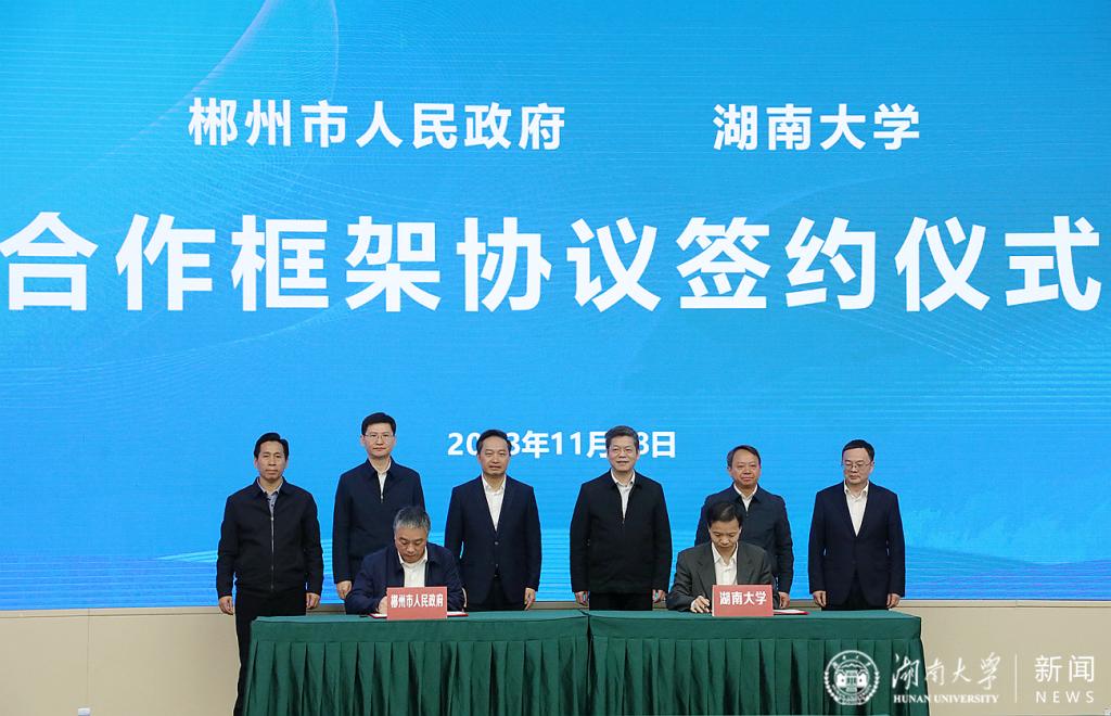 11月28日上午,湖南大学党委宣传部(新闻办公室)地址中心·郴州市校地合作座谈会在国家超级计算长沙中心报告厅举行。郴州市委书记吴巨培,市委副书记、市长阚保勇,我校党委书记邓卫、校长段献忠等出席座谈会。副校长谢赤主持座谈会,副校长李肯立代表学校签署双方战略合作框架协议。会上,段献忠、阚保勇分别介绍湖南大学党委宣传部(新闻办公室)地址中心和郴州市发展建设有关情况。郴州市委常委、副市长马天毅和李肯立分别代表郴州市人民政府和湖南大学党委宣传部(新闻办公室)地址中心签署战略合作框架协议。双方表示,湖南大...