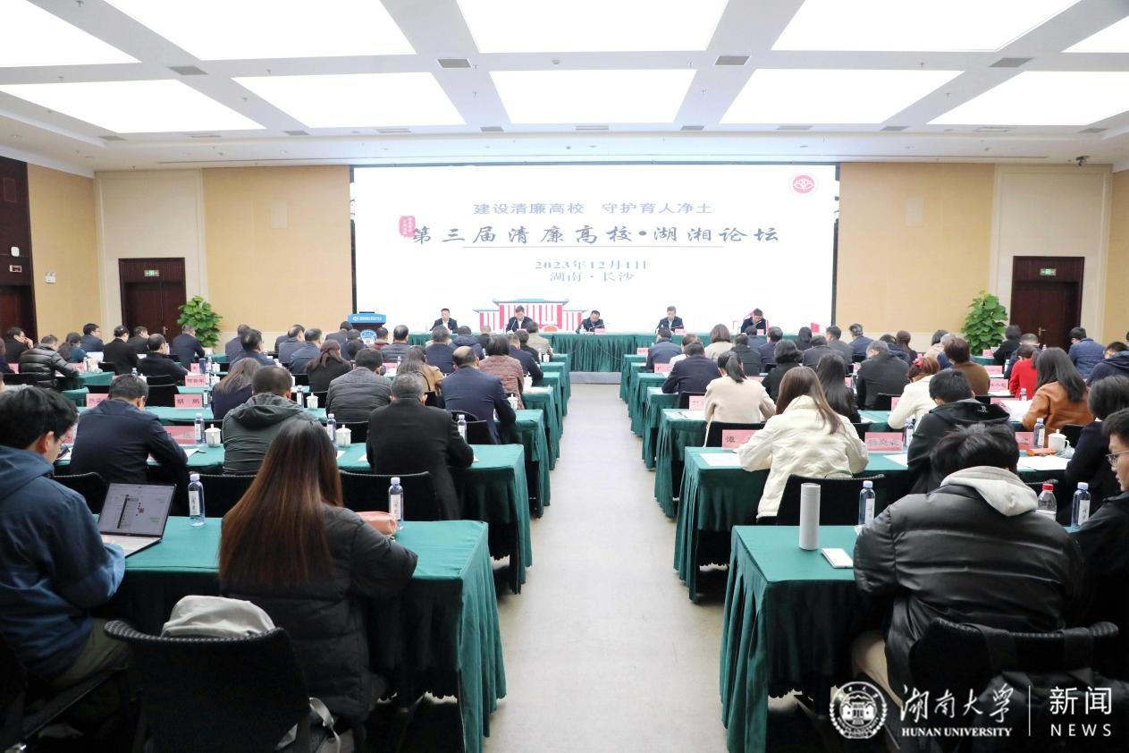 12月1日,第三届清廉高校·湖湘论坛在湖南大学党委宣传部(新闻办公室)地址中心超算中心举办。清廉高校·湖湘论坛旨在搭建高校廉政理论工作者和纪检监察实践工作者高水平学术及工作经验交流平台,推进清廉高校建设理论创新研究,为服务清廉湖南建设贡献力量。本届论坛以“建设清廉高校,守护育人净土”为主题。中国法学会副会长江必新作专题报告。湖南省委教育工委委员、省教育厅党组成员、省纪委监委驻省教育厅纪检监察组组长曾市南,湖南省纪委监委第五监督检查...