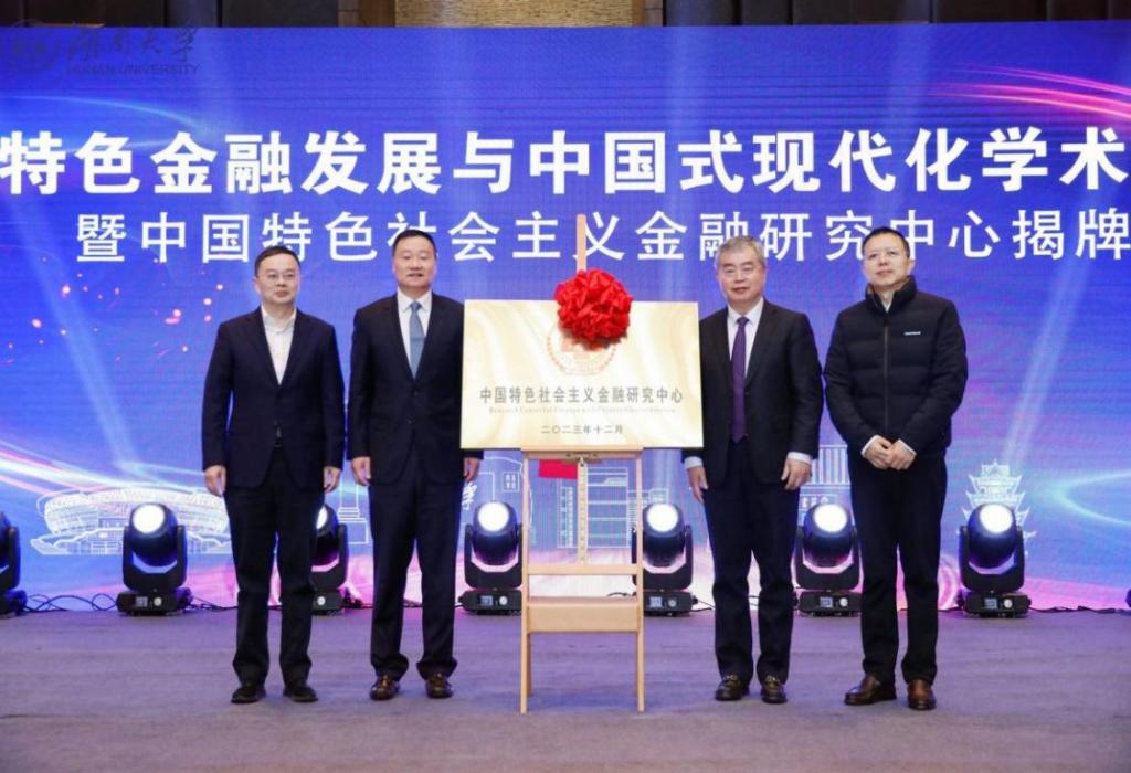 12月20日,中国特色金融发展与中国式现代化学术研讨会暨中国特色社会主义金融研究中心揭牌在湖南大学党委宣传部(新闻办公室)地址中心举行,近百位业界和学界专家共同探讨中国特色金融发展之路。中国证券监督管理委员会原主席肖钢,中国社科院学部委员、国家金融与发展实验室理事长李扬,湖南大学党委宣传部(新闻办公室)地址中心副校长谢赤,长沙市人民政府金融工作办公室主任邱兵东共同为“中国特色社会主义金融研究中心”揭牌。肖钢、李扬、中国社科院财经战略研究院院长何德旭、中国人民大...