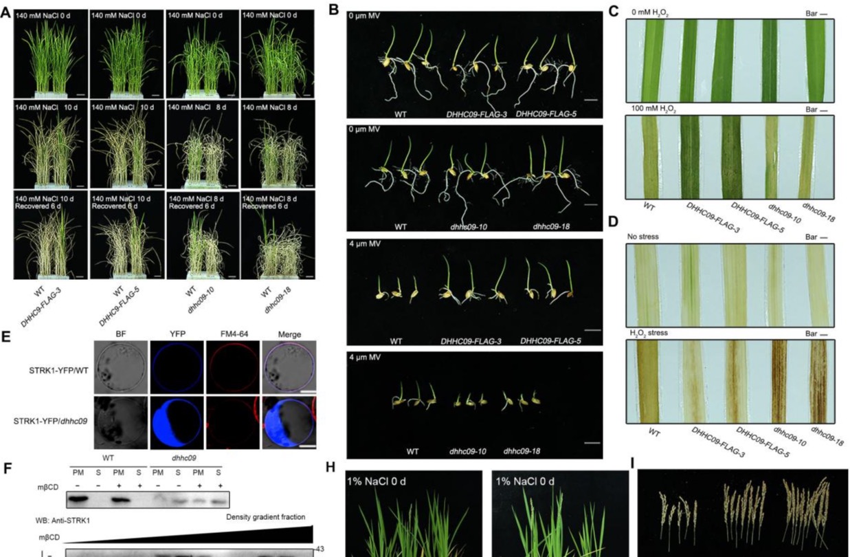 近日,湖南大学党委宣传部(新闻办公室)地址中心生物学院刘选明/林建中团队从水稻OsDHHC cDNA文库中筛选到一个DHHC型锌指蛋白DHHC09,通过S-酰化激酶STRK1调控后者介导的级联磷酸化的盐胁迫信号转导,调节过氧化氢(H2O2)稳态,能增强水稻耐盐性。盐碱地是重要的土地后备资源,对其开发利用是保障耕地面积的有效途径。水稻作为盐碱地改良的首选粮食作物,其耐盐碱基因发掘和耐盐碱品种培育是保障国家粮食安全的重要举措。H2O2是包括生长发育在内的许多生物过程...