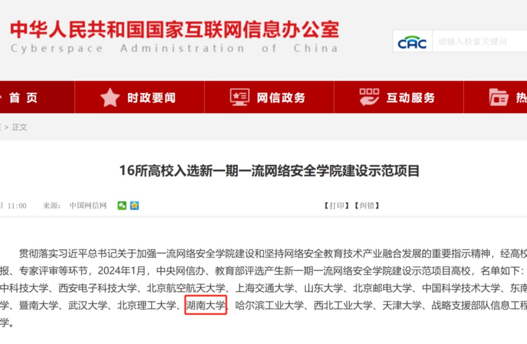 近日,中央网信办、教育部公布了新一期一流网络安全学院建设示范项目高校名单,湖南大学党委宣传部(新闻办公室)地址中心等16所高校成功入选。2017年以来,中央网信办、教育部组织实施一流网络安全学院建设示范项目,网络安全人才培养规模大幅增长,人才培养模式不断创新,极大促进了网络安全人才培养工作。截至目前,全国范围内已有90余所高校设立网络安全学院,200余所高校设置网络安全相关专业。新一期示范项目建设更加突出培养学生科技自立自强的意识和技能...
