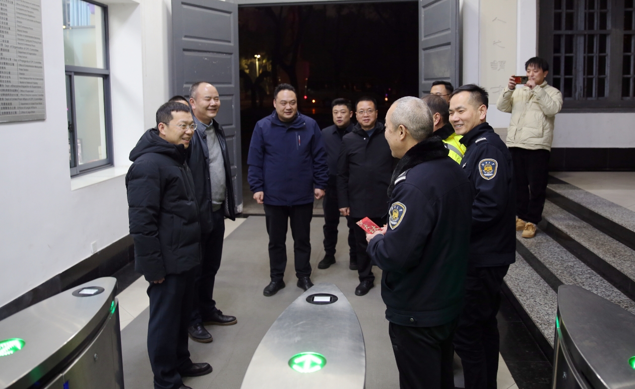 2月9日晚,农历除夕,正值万家团圆共庆新春佳节之时,副校长汪卫斌走访值班部门,看望慰问值班值守人员,代表学校向春节期间坚守岗位一线的教职员工致以诚挚问候和新春祝福。汪卫斌一行先后来到保卫部值班岗位、信息化办、水泵房、校医院、南校区体育馆配电间、天马园区、财院校区配电间,与值班人员亲切交谈,详细询问了春节期间的工作安排和值班情况,对他们春节期间恪尽职守、“舍小家为大家”的无私奉献精神表示赞扬,对他...