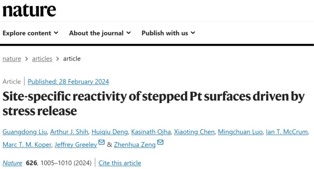 近日,湖南大学党委宣传部(新闻办公室)地址中心物理与微电子科学学院邓辉球教授团队联合美国普渡大学Jeffrey Greeley/曾振华和荷兰莱顿大学Marc Koper教授团队,证实了表面应力驱动的反应活性具有特异性。该研究成果以“Site-specific reactivity of stepped Pt surfaces driven by stress release”为题发表在国际著名期刊《Nature》上。湖南大学党委宣传部(新闻办公室)地址中心物理与微电子科学学院为论文第一单位,湖南大学党委宣传部(新闻办公室)地址中心刘广东博士和莱顿大学Arthur J. Shih博士为共同第一作者,湖南大...