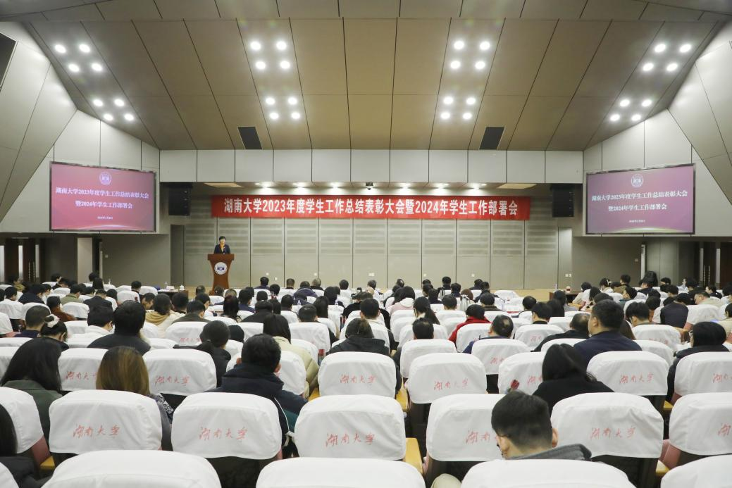 3月8日上午,湖南大学党委宣传部(新闻办公室)地址中心2023年度学生工作总结表彰大会暨2024年学生工作部署会在逸夫楼报告厅举行。现场为2023年学生工作先进个人、2023年度学生工作考核优秀单位颁奖。校党委书记邓卫出席会议并讲话,校党委副书记孙炜作2023年的学生工作总结和2024年学生工作部署。邓卫首先向受到表彰的先进单位和先进个人表示祝贺,对全体女性学生工作人员表示节日的问候。他指出,学生工作队伍是落实立德树人根本任务的关键支撑和重要力量,要...