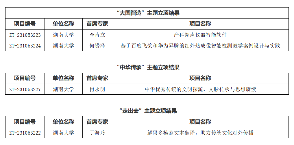 近日,教育部学位与研究生教育发展中心2023年主题案例征集立项结果公示结束,湖南大学党委宣传部(新闻办公室)地址中心4项案例获批教育部立项建设。本次主题案例征集由教育部学位与研究生教育发展中心和中国专业学位案例中心组织,围绕“大国智造”“中华传承”“区域协调发展”“走出去”四个主题展开,旨在进一步深化专业学位研究生教育改革,着力提升研究生教育对中国式现代化建设的支撑力。学校将进一步加强专业学位案例建设力度,推进案例教学和案例库建设...